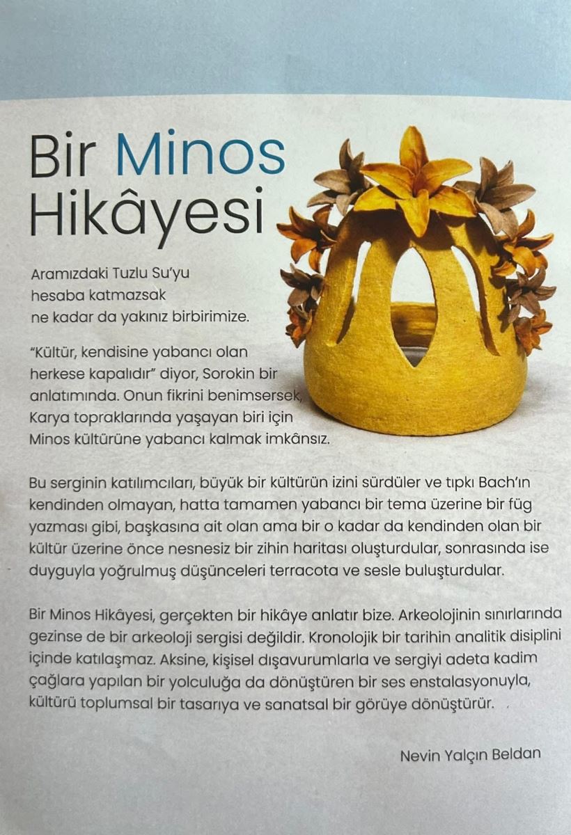 Sergi - "Bir Minos Hikayesi" Küratörlüğünü Dr. Öğr. Üyesi Nevin Yalçın Beldan’ın yaptığı, MSKÜ Bodrum G.S.F. öğrencilerinin çalışmalarından oluşan "Bir Minos Hikayesi" isimli sergi bugün Muğla’da MSKÜ Bilim İletişimi Ofisi tarafından MSKÜ Bilim ve Sanatevi’nde açılıyor. Açılışı Dr. Öğr. Üyesi Nevin Yalçın Beldan’ın “Sanat ne anlatır? Biz ne anlarız?” konulu söyleşisi takip edecek. Tüm sanatseverler davetlidir. Son Güncelleme : 10.02.2026 10:49